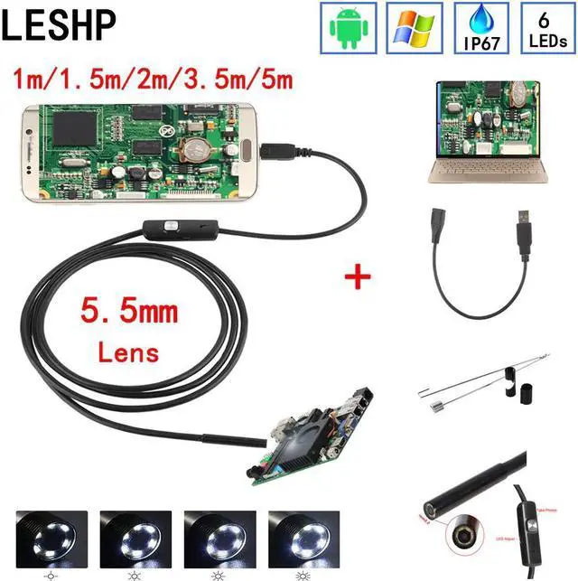 Camera HD USB 5.5mm With 6 Adjustable LED Soft Cable Waterproof Inspection Borescope for Android PC