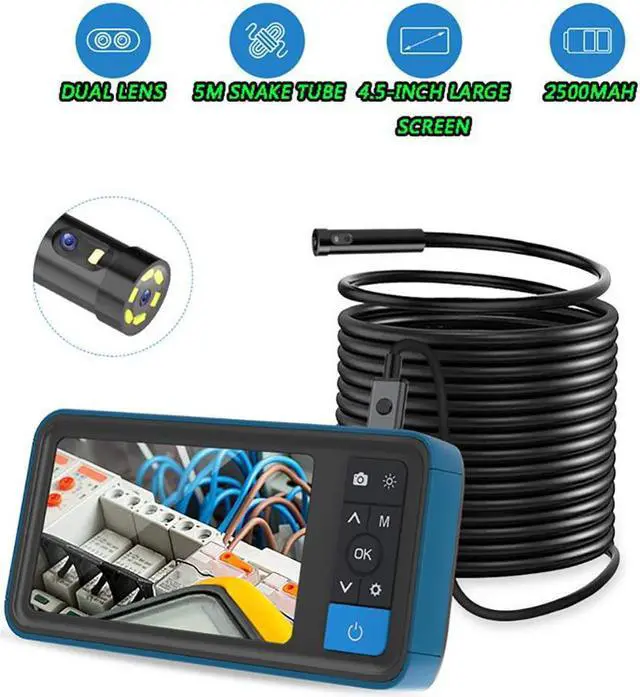 Hand-Held 4.5" HD Screen : biger and 3 times clear screen, 4.5 inch color IPS screen wih 854*480 resolution. This 1MP Industrial endoscope with adjustable LED light, catches the real color of the items and conveniently displays what the camera sees on the large screen. Allowing you to observe hard-to-reach and hard-to-see underwater areas and further.