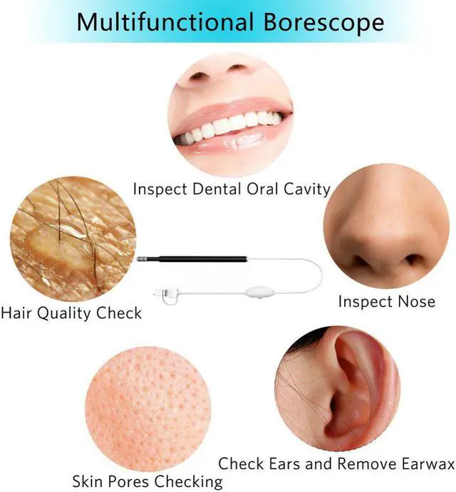 Multifunctional, it not only can check the ear canal, but also can check the eardrum, mouth, gums, throat, nasal cavity, scalp hair root and other body parts.
