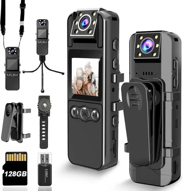 Law Enforcement Recorder with Audio and Video Recording, HD 180P Body Camera with 1080° Swivel Lens, 6 Hour Battery, IR Cutoff Auto Night Vision, 128GB Law Enforcement Recorder for Individuals Civilia