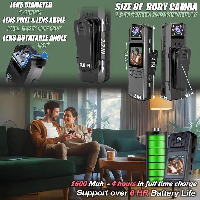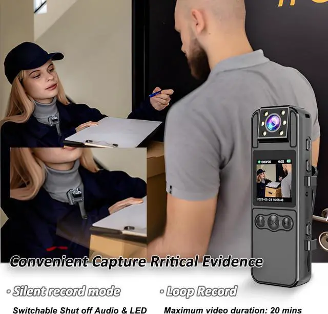 POWERFUL PERSONAL CAMERA LCD SCREENEvery law enforcement recorder with 1080P recording can be replayed on a high quality LED screen. Ensure the accuracy of your live recording angle and easily replay and delete your footage without the need of a laptop/mobile/PC.Detailed menu for you to switch and control the law enforcement recorder easily. Provide inverted screen switching mode, support power display, time stamp setting, quick reset law enforcement recorder.