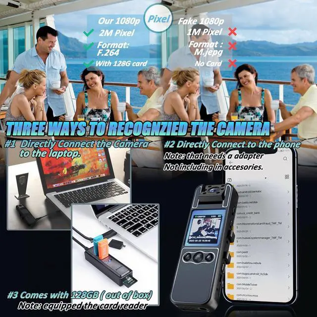 Full HD 1080PLaw Enforcement Recorder: Combining high quality optical glass and multi-layer coating technology to ensure recording quality, the video can be captured accurately and clearly. With the 1080P sensor, you don't have to worry about losing any details in the 2MP footage. You don't need to worry about video security and memory space, the camera will save them automatically, while the H.264 format will save them efficiently and help you save more extra recording space.
