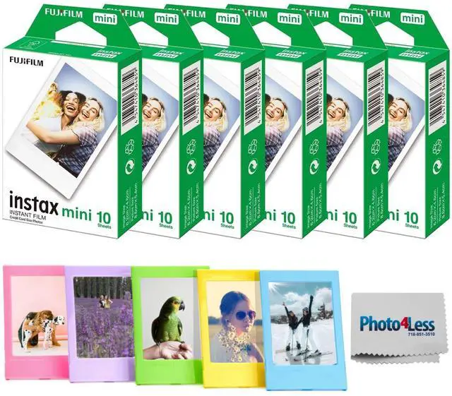 Capture all of lifes special moments with The INSTAX MINI INSTANT FILM 60-count multi-pack. This pack provides countless picture-taking opportunities. INSTAX MINI White Border Instant Film is compatible with all INSTAX MINI Instant Cameras & Smartphone Printers. Bundle Includes: Fujifilm Instax Mini Instant Film Value Pack - 60 Photos + Plastic Photo Frame For Mini Film Assorted Colors + Cloth