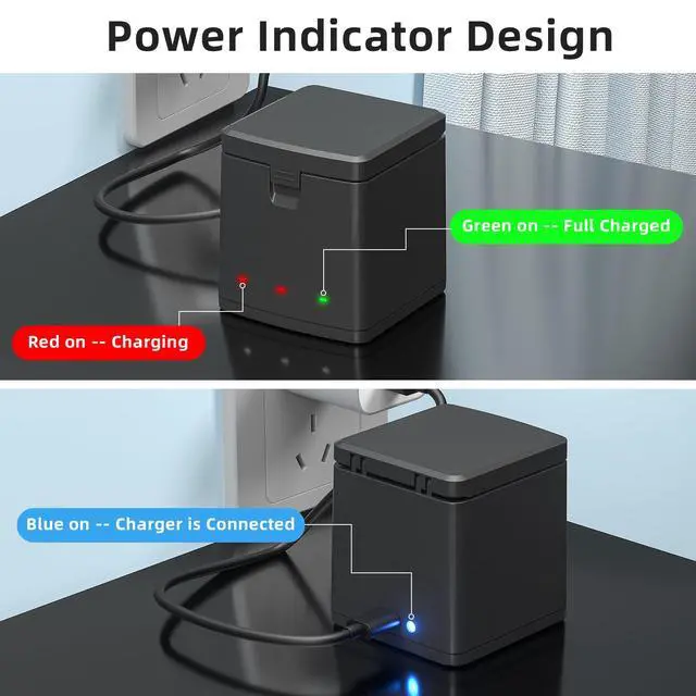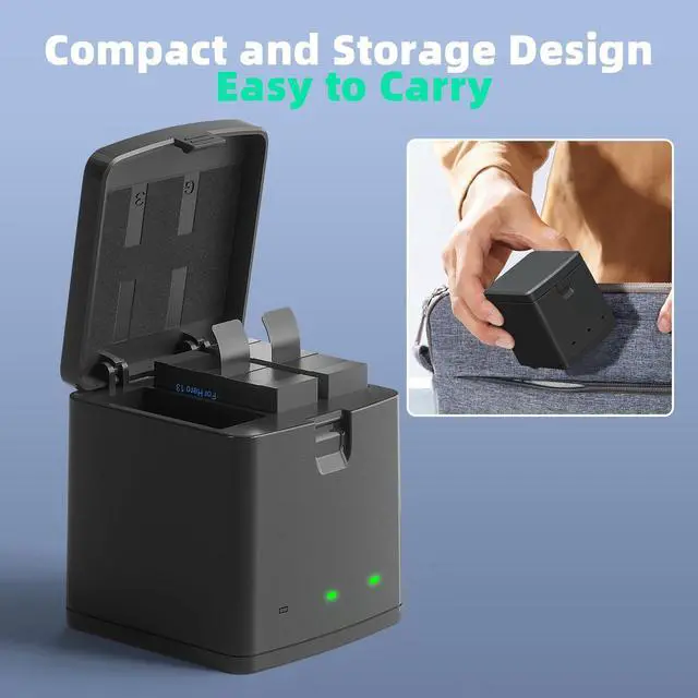 [Compact Design] Battery charging station compatible with GoPro HERO 13 can charge 3 batteries at the same time.The indicator light on charger makes it easier to check the charging status