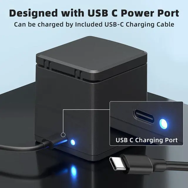 [Package Includes] 2 x 2100mAh battery compatible with GoPro HERO 13 Black camera, 1 x portable charging station, 1 x USB to Type-C charging cable and 1 x manual