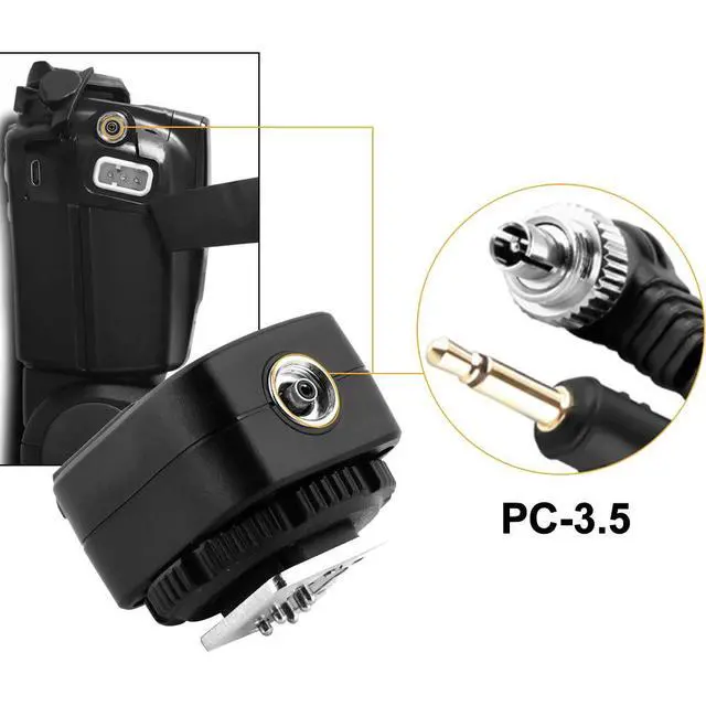 flash hot shoe adapter enables you to trigger a flash attached on top of the adapter hot shoe as well as triggering another flash connected via the PC sync lead. The accessories of the hot shoe can achieve all functions of the Canon camera in addition to the e-TTL of the flashgun. It fits all Standard ISO 518-2006 hot shoe flashgun including the 580EX, 580EX II, 550EX, 430EX, 430EX II etc. It has a PC sync socket so you can connect an additional studio light or flash via a PC sync cable.