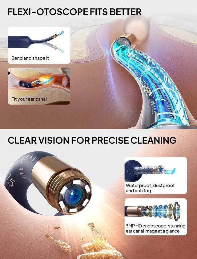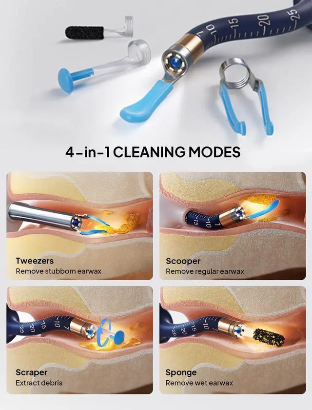Ear Wax Removal Tool Camera, Visible Ear Cleaner Earwax Remover Kit with Tweezers, Flexible Ear Scope Otoscope with Light, Portable Cleaning Kit Earpick for Adults & Kids