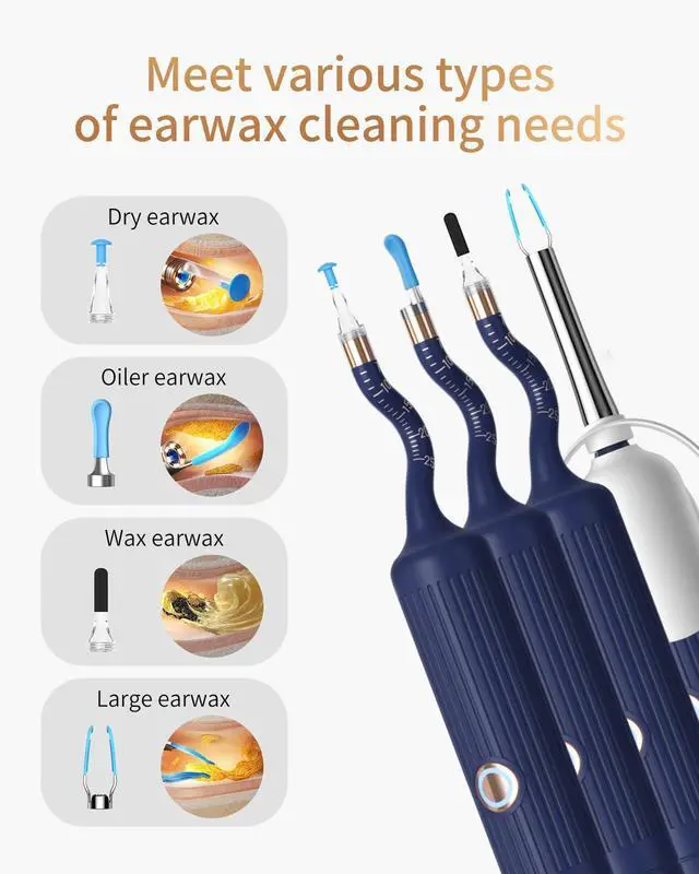 The ear pick head can be cleaned with an alcohol swab. The product accessory compartment contains ear pick accessories that can be replaced.