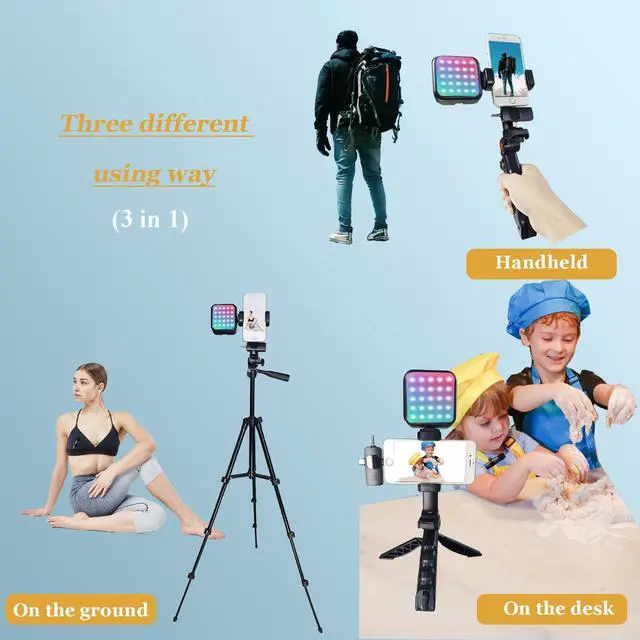 Three different usage methods: This Vlogging kit can be placed on a desktop, handheld, or on the ground. It is a three in one product that is suitable for video production in different scenarios. The deformable tripod in the product can be deformed and folded, enabling the conversion between handheld and desktop placement.