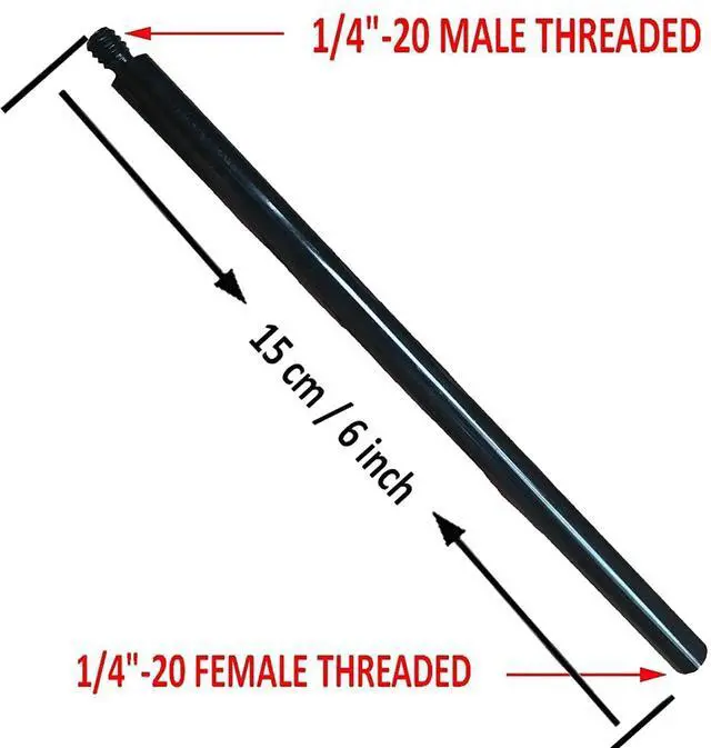 6" TRIPOD EXTENSION EXTENDER TUBE ,GREAT FOR HD CAMCORDERS, DIGITAL CAMERAS, CCTV, SLR & MORE! INDUSTRIAL GRADE METAL EXTENSION FOR ANY 1/4"-20 THREADED TRIPOD, OR CAMERA MOUNT. 1 MALE & 1 FEMALE THREAD AT BOTH ENDS MAKING EXTENDING YOUR TRIPOD/MOUNT EASILY. Lightweight and portable, useful accessory for photography lovers Made of good quality Metal material, the rod is sturdy, anti-rust and durable