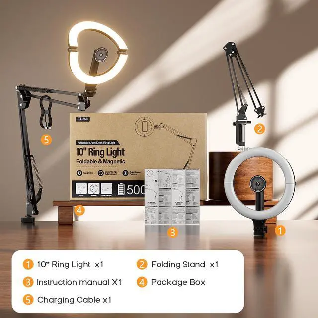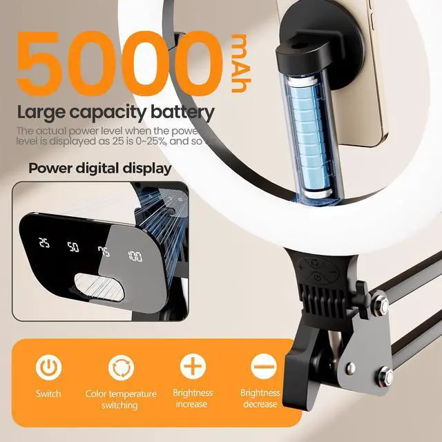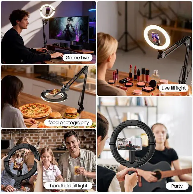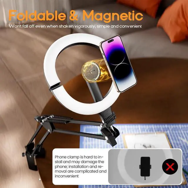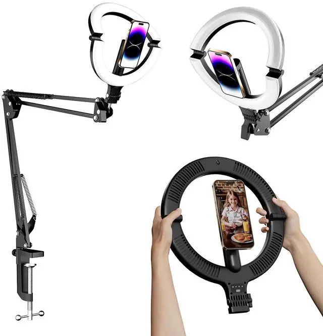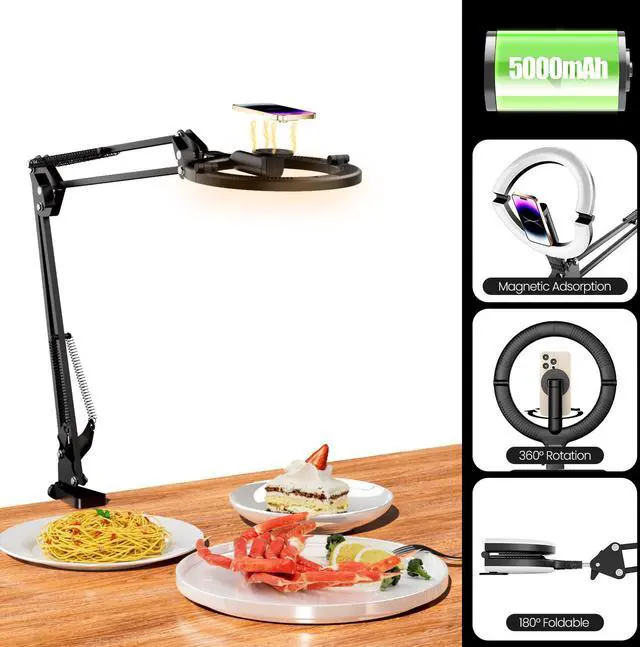 Flexible Angle AdjustmentThe Ring Light for Desk Easily adjust the height and angle. The ring lights and phone holder can be oriented at any angle. Capture perfect overhead shots for recipes, crafts, or flat lays-just the way you want.
