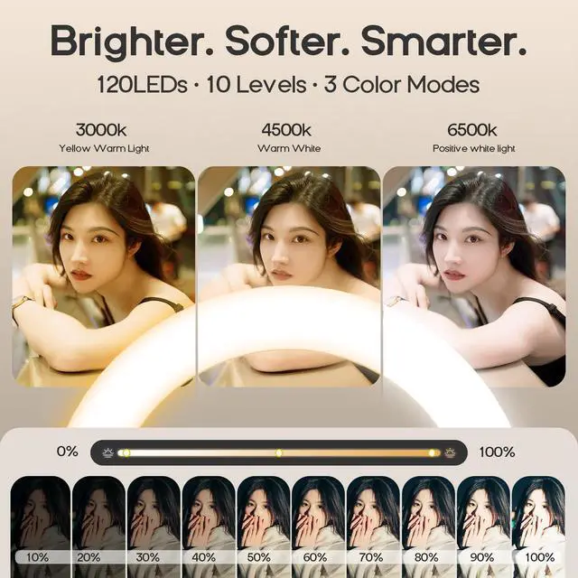 Uniform Lighting without ShadowsThe new 10-inch upgraded ring light provides an expansive and professional lighting range. The even, natural illumination highlights fine details of the subject, eliminating shadows and uneven lighting. Uniform lighting enhances the clarity of the object's contours and improves the visibility of details. Your photo and video quality will be greatly improved.
