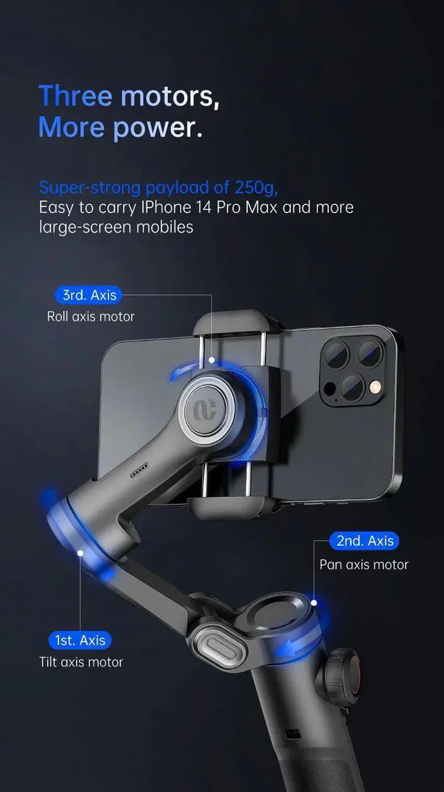 Handheld Gimbal Stabilizer, Intelligent AI Facial Tracking,