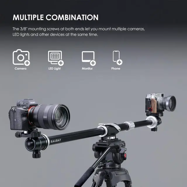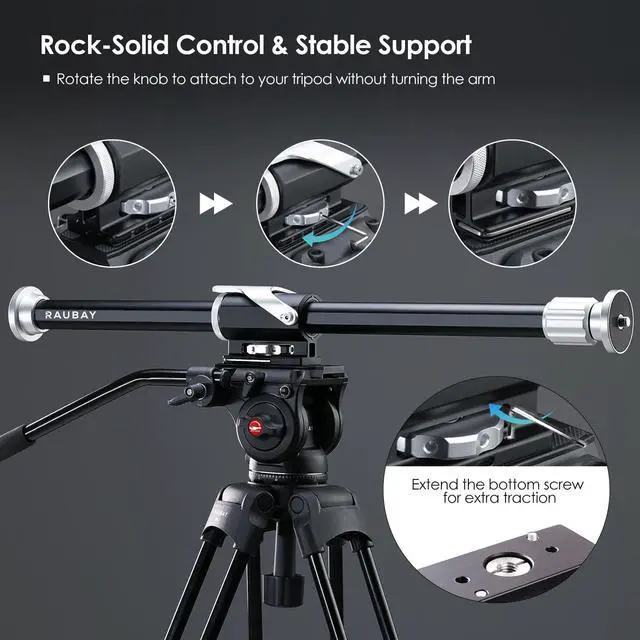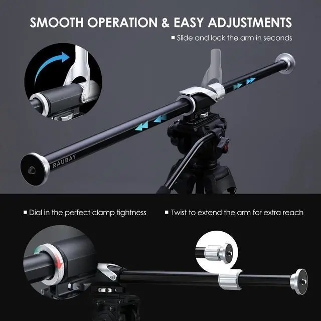 RAUBAY Tripod Extension Arm TE01, Fixed Horizontal Boom Arm for Overhead & Top-Down Photography, Heavy-Duty Aluminum, 1/4 in & 3/8 in Mount, 26-40 in Adjustable for Camera, Light & Mic