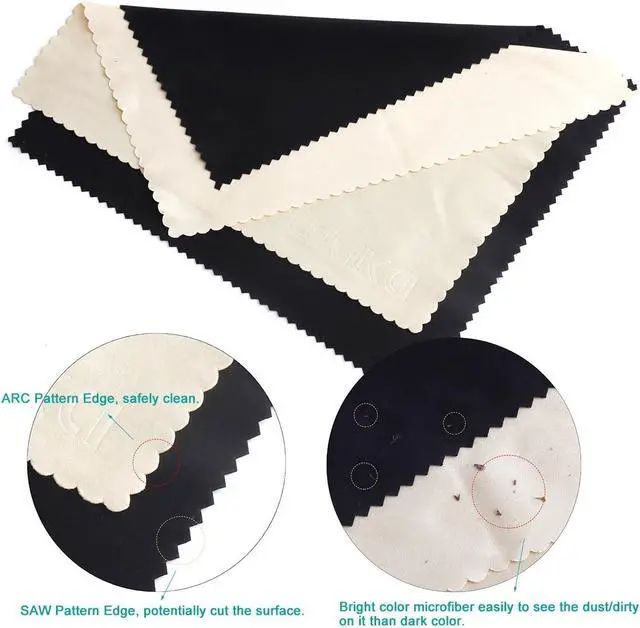 Safe for All Surfaces: Microfibre cleaning cloths with special curved patterned edges won't scratch your expensive eyewear and can be used for glasses mobile phones TVs computer monitors tablets laptops camera lenses sunglasses or other delicate surfaces.