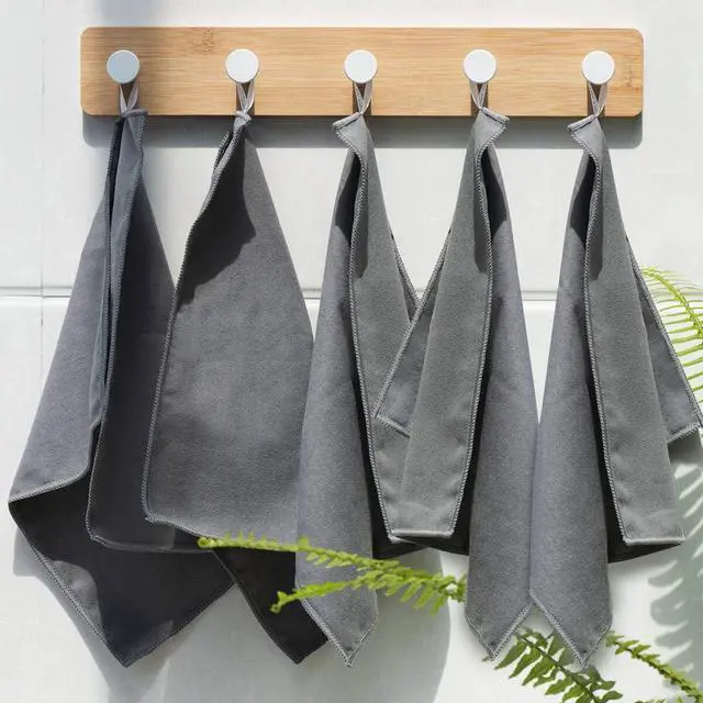 ? [PREMIUM SUEDE MICROFIBER] - The gray ultra fine suede weave fabric is unlike any of other microfiber towels - it really is suede-like which is good because unlike the microfiber towels with the longer pile these don't trap small specks of hard debris that could scratch your equipment? [SOFT FEELING] - So nice to touch Absorbant and dry quickly These suede microfiber towels are woven blend of extra-fine fibers and the high thread count ensures that it is gentle on your skin; Swap out your scratchy towels and feel the luxurious difference? [PERFECT SIZE] - Streak-free lint-free and scratch-free Well-made Colorfast; 8 pcs gray ultra fine suede microfiber cleaning cloth in a sealed plastic bag Removes smear marks and fingerprints easily and quickly? [RE-USABLE & MULTI-USE] - Perfect for cleaning eye glasses photo lenses electronic screens windows mirrors and more; Great for any ceramic coating products; Can be laundered in the washing machine? [GREAT FOR CAMPING OR TRAVELING] - They fold up really small they are very light weight but they are very absorbent and they get the job done great for hiking swimming and other outdoor activities; Engineered for exceptional performance and durability