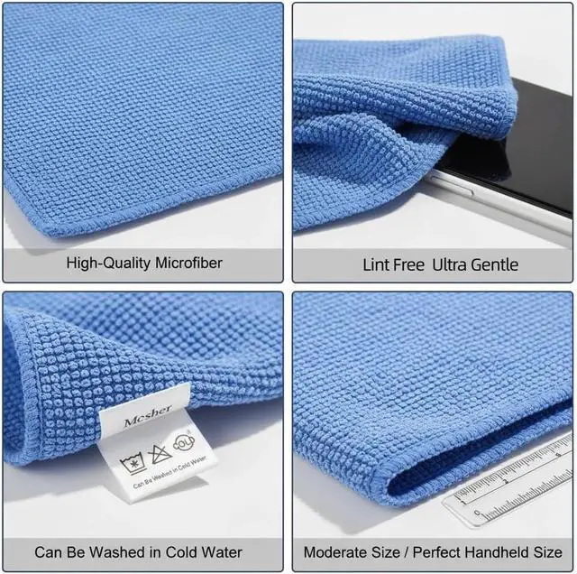 Size: 6 x 7 (15cm x 18cm) each item individually packed in a plastics zip bag. Brand new made of Microfiber material Can be washed and used repeatedly. Excellent cleaning ability easily to remove the oil dust dirt grease and fingerprints no scratch surface. Great water absorbent ability Anti-bacteria good drying and durability. Perfect for cleaning your Camera lens LCD Screens Sunglasses Glasses Cellphones Tablets Watches Laptops PDA and so on.