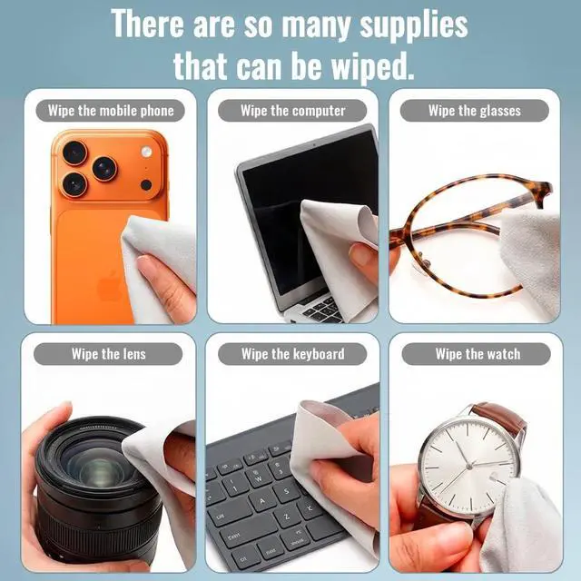 [Professional Cleaning] Ultra-high GSM And 110D composite microfiber technology fine soft dense lint-free fade-resistant and powerful stain removal. Effortlessly removes water spots fingerprints grease and dust from surfaces requiring high cleanliness standards such as eyeglasses mobile phones car dashboards and more; [Product Uses] This microfiber cloth is suitable for lenses (cameras camcorders telescopes) CD players musical instruments (all types of instrument surfaces) eyeglasses AR/VR smart glasses watches jewelry instruments and screens (mobile phone screens computer screens iPad screens and various electronic displays); [Reuse] Ultra-soft and ultra-thick materials are used which can be washed and reused; [Value Set] Contains 10 high-quality microfiber cleaning cloths ( 6.89 * 5.71 in); [Independent packaging] Each microfiber cloth has its own packaging bag which is highly clean small and light and easy to carry;