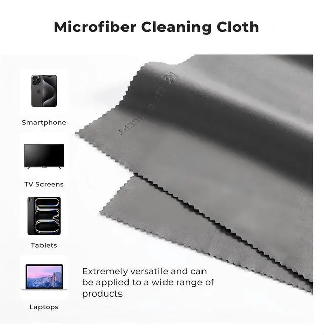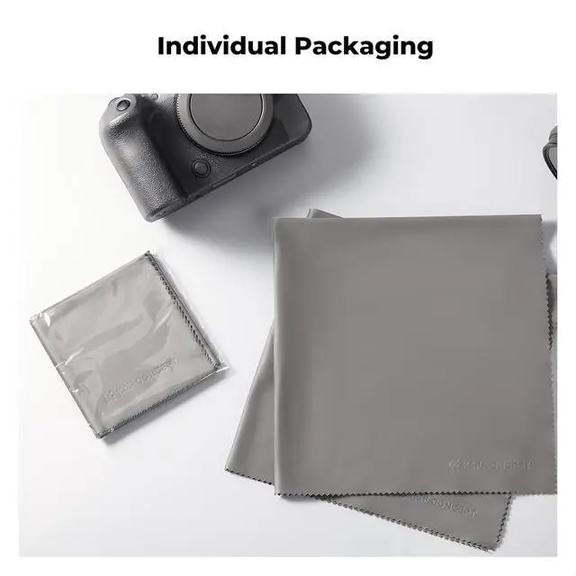 Extral Larger Size4 pieces of 16x16in large gray microfiber cleaning cloths Individually wrapped keep it clean and organized. Superior Microfiber ClothWashable and reusable screen cleaning cloths that absorbs and removes dust oil smudges fingerprints and dirt. Safe to UseThis microfiber cloth for electronics offers endless possibilities of use perfect for cleaning TV GPS screens laptops computers iPad MacBooks jewelry camera lens glasses etc. Easy to CarryThis large screen cleaning cloth can store perfectly flat in your tablet case without adding any bulk and also can be put into a camera bag purse or eyeglass case. A Must in HomeThe large glasses cleaning cloth as a practical gift for families and friends and you can be sure to win their appreciation! K&F Concept provides quality and affordable photography and cleaning options for your everyday life.