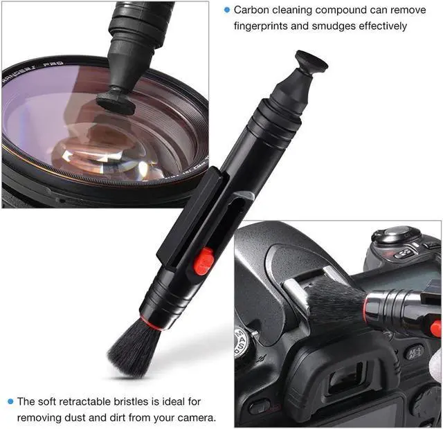 Double-Tip Flexibility]: Equipped with a dual-tip design the lens cleaning pen features an activated carbon powder tip to absorb fingerprints and grease and a filament brush to clean lens crevices and zoom rings. For best results use with the included lens cleaner. [Lens & Sensor Cleaners -