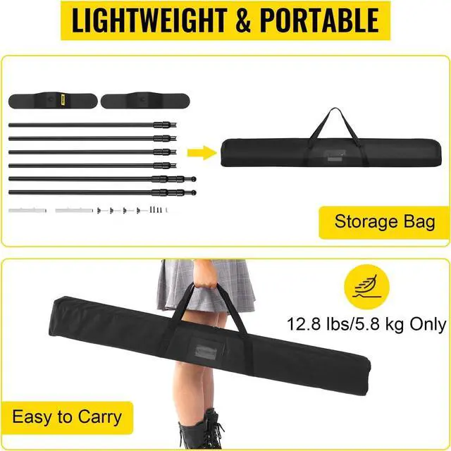 Easy Storage & Carrying: The backdrop stand for parties comes with a carry bag to ensure everything is in order. Oxford fabric material and strong bag strap make it durable and dust-proof. With 12.8 lbs/ 5.8 kg weight and this storage bag you can quickly bring the kit to any occasion.