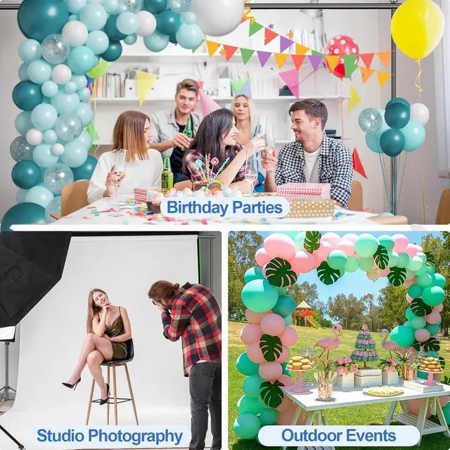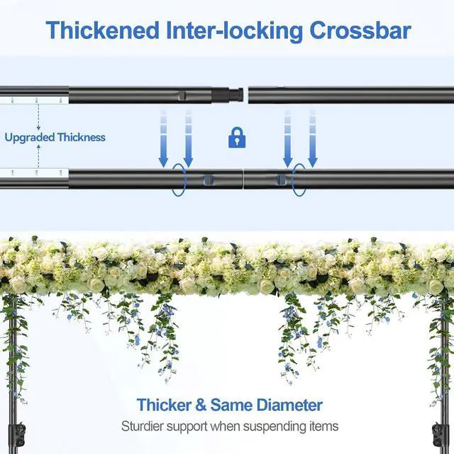 Better Effect with Accessories This included 6 heavy-duty spring clamps (max opening: 2 inches) firmly grip photography backdrops on the backdrop frame preventing slipping and keep surfaces smooth. Additionally it is equipped with a high-quality nylon carrying bag which is convenient for storage and transportation. Application for Multiple ScenariosThis photography backdrop stand kit is suitable forbirthday parties prom decoration video recording portrait photography and even large-scale events like wedding photo booth product display trade shows and pet picturesoffering reliable performance wherever you go. Package ContentsThis background stand backdrop set includes (2) x metal backdrop stands (4) x crossbars (6) x heavy-duty backdrop clamps and (1) x portable carry bageverything you need for a seamless setup without any tools required.