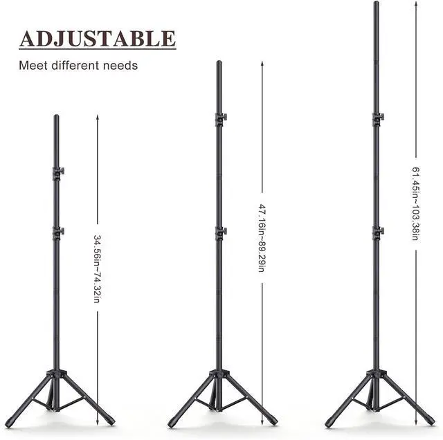 Adjustable SizeThis 10×8ft backdrop stand horizontal and vertical bars can be adjusted size professional photographers can adjust the size of the background stand according to the required scene using the background standBackdrop Stand CompositionPhotography backdrop stand kit contains 2 tripods 6 backdrop clamps 2 sandbags and horizontal and vertical poles and comes with a portable storage bag easy to pack and move but also more convenient to storeThe Use of AccessoriesTripod open the maximum locking angle sandbags with the use of better to provide stability clamps can be well fixed backgrounds decorations ribbons balloonsStrong and Stable MaterialThis background stand is made of high-quality aluminum alloy durable and strong providing strong support to the backdrop to ensure the stability of the backdrop and provide the ideal photography decorative effectMulti-Scenario UseThis backdrop frame is suitable for partiesweddings holiday decorations banners professional photography photo shoots and is ideal for other event decorations