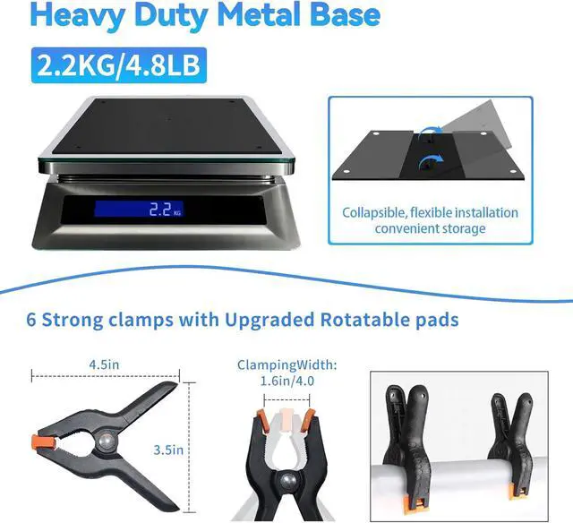 Heavy-Duty Foldable: Comes with two solid metal bases each weighing 4.8 lbs ( 2.2 kg) and measuring 11.8 x 11.8 (30 x 30 cm). The flat reinforced design provides exceptional ground contact and sturdiness. Foldable for compact storage.