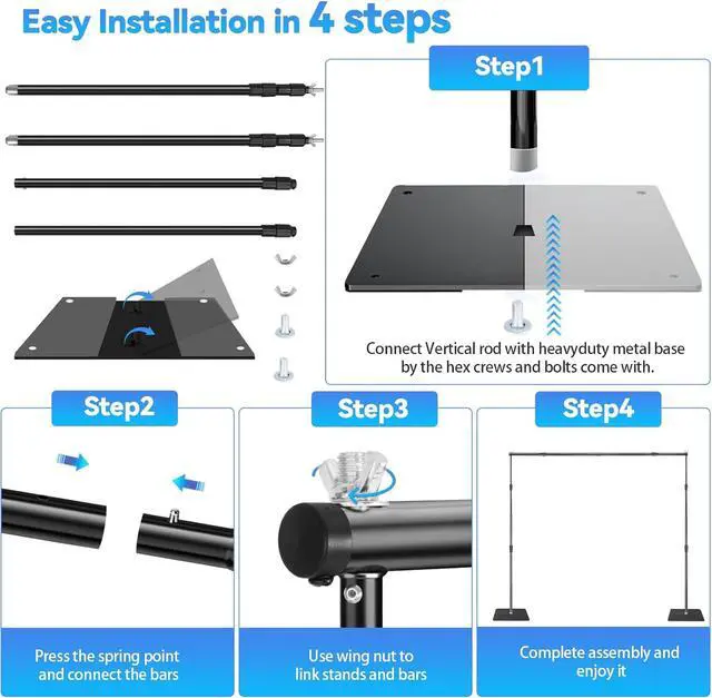 Enhanced Thread: The Support Poles feature deeper and longer thread grooves to keep your backdrop stand firm and secure even under heavier loads. Fully