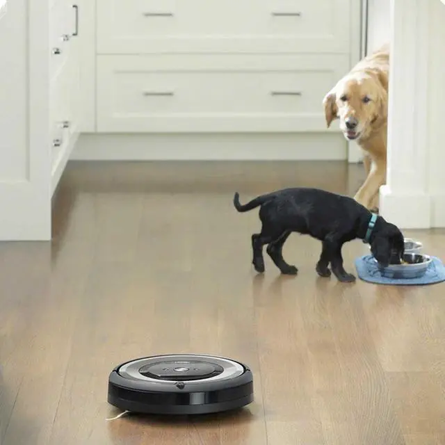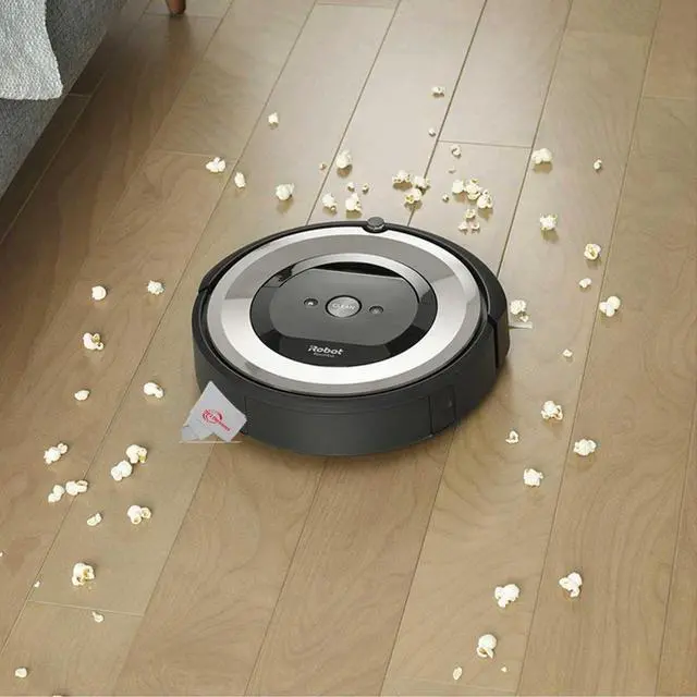 The future is here with the Roomba e5 Robot Vacuum, a super-smart machine with WiFi capabilities for even more hands-off cleaning. From small, unseen dust and allergens to large debris, the Roomba's 3-Stage Cleaning System with Dual Multi-Surface Brushes work together to powerful suction your carpets, rugs and hard floor surfaces. Perfect for pet owners, the High-Efficiency Filter captures 99% of cat and dog allergens, in addition to dirt, dust and other debris that accumulates daily in your home. This smart robot vacuum intelligently navigates your home with iAdapt Navigation, a series of sensors that guide the robot under and around furniture. Dirt Detect sensors discover the messier parts of the floor so the multi-surface rubber brushes can clean them more thoroughly. The brushes instantly adjust and flex to stay in constant contact with floors, whether it's hard floors or carpet. The Roomba e5 Robot Vacuum works with Amazon Alexa and Google Assistant so you can sync up your smart home with just your voice. The iRobot HOME app lets you schedule cleaning while you're away, as well as monitor cleaning activity, watch maintenance videos and more. After 90 minutes of cleaning, the vacuum automatically docks and recharges for its next scheduled cleaning.