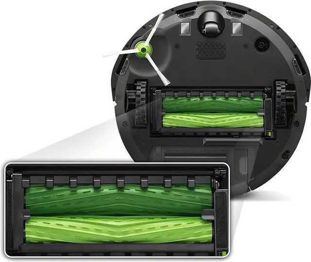 DUAL MULTI-SURFACE RUBBER BRUSHES - Instead of using a single bristle brush, Roomba® i1+ Robot Vacuum works with Dual Multi-Surface Rubber Brushes that flex to adjust to different floor types and avoid getting tangled with pet hair.