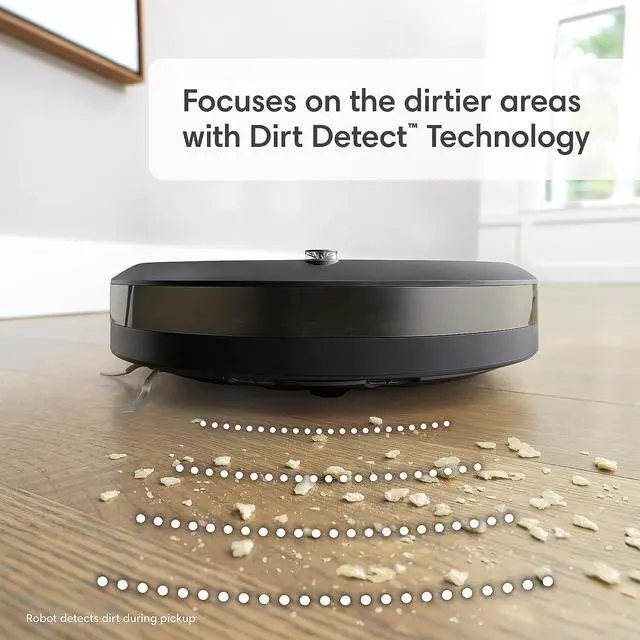 Patented Dirt Detect Technology allows the Roomba Combo i5+ robot to detect dirtier areas of your home and clean them more thoroughly when the Vacuum Bin is installed.