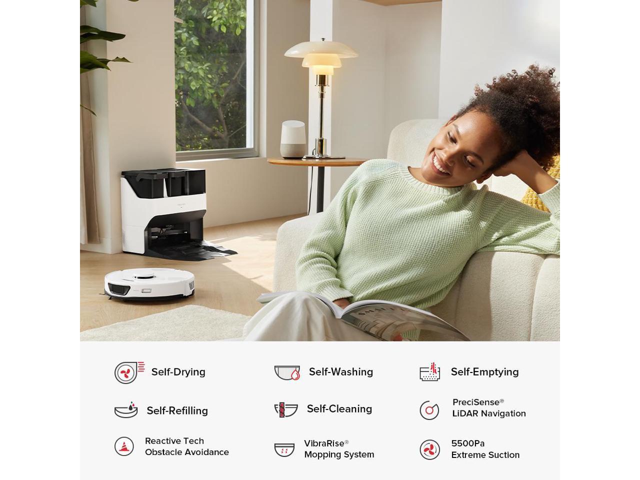 Roborock S7 Max Ultra Robot Vacuum Cleaner, Self-Drying, Self-Washing, Self-Emptying,5500Pa Suction, Reactive Tech Obstacle Avoidance, White (Renewed)
