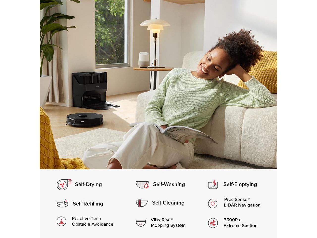 Roborock S7 Max Ultra Robot Vacuum Cleaner, Self-Drying, Self-Washing, Self-Emptying,5500Pa Suction, Reactive Tech Obstacle Avoidance, Black (Renewed)