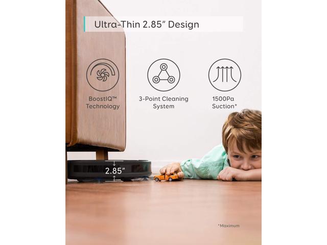 - Cleans Where Others Can't: The slim 2.85" body with an upgraded 1500Pa only cleans glides under furniture to vacuum where you can't see. Automatically increases suction power within 1.5 seconds when extra vacuuming strength is needed to get the best clean.