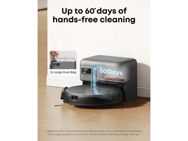 - Self-Empty Station: robotic vacuum C10's dust bin is automatically emptied into the station's 3L dust bag. Thanks to its large capacity, it only needs replacing every 60 days.
