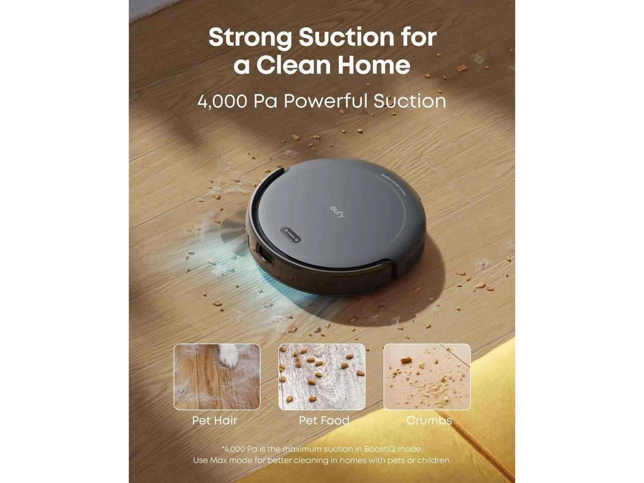 - 4,000 pa powerful suction: vacuum robot C10 with 4,000 Pa suction power, combined with the rolling brush, sweeps up pet hair, dirt, crumbs, and other messes*. *Actual performance may vary based on the floor type and dust level.