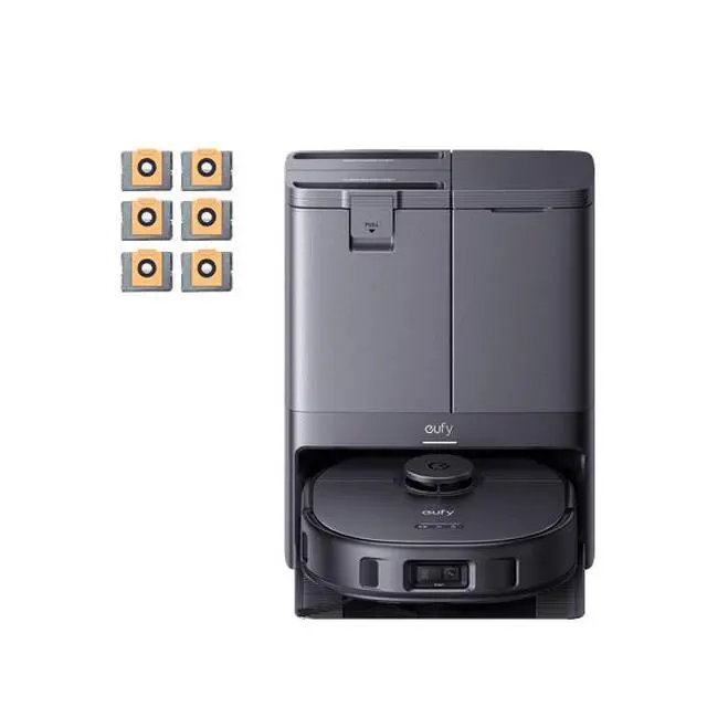 eufy X10 Pro Omni Robot Vacuum and Mop Combo, Incredible Suction, Dual Mops with 12 mm Auto-Lift and Carpet Detection + 6-Pack Large Capacity Dust Bags - Black