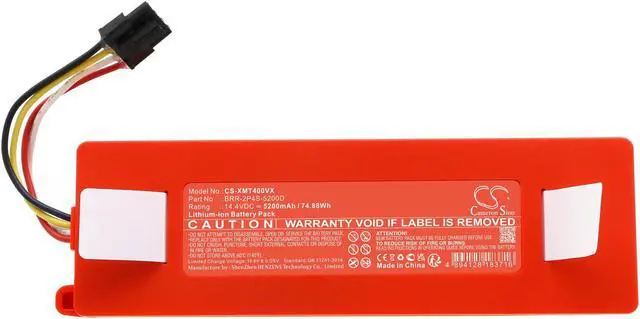 Battery for Xiaomi Mijia 1S Roborock S50 Roborock S51 Roborock S55 Roborock S6 Compatible with the following devices Mijia 1S, Roborock S50, Roborock S51, Roborock S55, Roborock S6, Roborock T4, Roborock T60, Roborock T61RR, Roborock T65, Roborock T70, Roborock T71RR, SDJQR01RR, SDJQR02RR, SDJQR03RR, SKV4000CN, SKV4022GL, Roborock AED03HRR, AED04HRR, C10, E20, E25, E4, E402-00, E5, E502-00, E552-00, Mi First Generation SDRJQR01RR, Mi Second Generation SDRJQR02R, Q Revo, Q380RR, Q5, Q5+, Q7, Q7 Max, Q7 Max+, Q7M02-00, Q7M52-00, Q7MP52-00, Q7MP52-01, Q7P02-00, Q7P52-00, R1000007, R100008, R100009, R100010, R100011, R100012, R100013, R100014, R100015, R100016, R100017, R100018, R100019, R100020, R100021, R100022, R100023, R100025, R100026, R100030, RKS6PRV0, RSD0059CE, RSD0070CE, RSD0122CE, S4, S4 MAX, S402-00, S452-00, S4E52-00, S5, S5 Max, S50, S502-00, S51, S512-00, S55, S552-00, S5E02-00, S5E52-00, S6, S6 Max, S6 MaxV, S6 Pure, S602-00, S652-00, S6P02-00, S6P52-00, S6V50-00, S6V52-00, S7, S7 MaxV, S7 MaxV Plus, S7 MaxV Ultra, S7 MaxV+, S7 Pro Ultra, S7+, S70, S702-00, S752-00, S7M52-00, S7MP52-00, S7MU52-00, S7PU02-00, S8, S8 Plus, S8 Pro Ultra, S8+, S802-00, S80ULT, S852-00, S8PU52-00, T4, T60, T61RR, T65, T70, T71RR, Xiaowa E30, Xiaowa E35, XM200008, XM200009, Xiaowa C10 C102-00, E20 E202-00, E25 E252-00, E35 E352-00 Compatible with Battery Part Numbers BRR-1P4S-2600S, BRR-2P4S-5200D, Roborock 400-900-1755, BJSTS0002-2016, BRR-1P4S-2600S, BRR-2P4S-5200D, Xiaowa