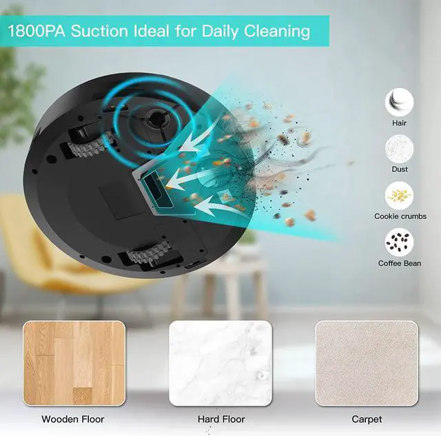 - The M201 robot vacuum cleaner unique brushless motor design features low power consumption, small size, and strong suction (1800 Pa) to ensure a thorough cleaning of your home.