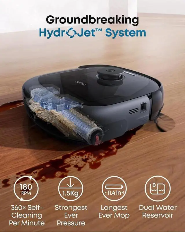 HydroJet System Equipped with a Dual Water Reservoir and a dual-scraper structure, E28 cleans the mop in real-time, ensuring it stays fresh throughout the cleaning session.