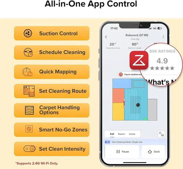 8. Pet-Friendly & Ultra-Quiet: Operates at just 60dB (Mop Only) to keep your home peaceful while efficiently cleaning.