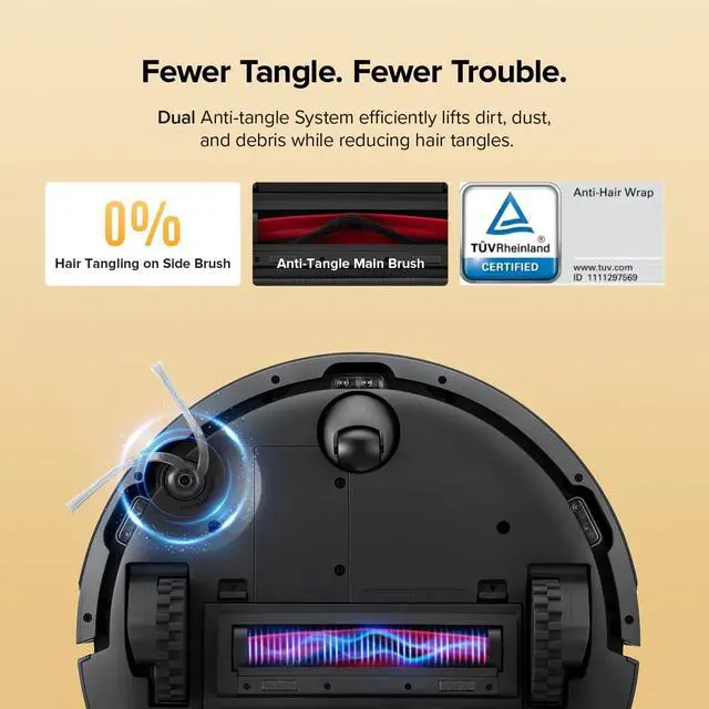 • 10,000 Pa HyperForce Suction Power, Dual Anti-Tangle Design, Vacuum and Mop in one Pass, PreciSense LiDAR Navigation, App Controlled Mopping, Smart App
