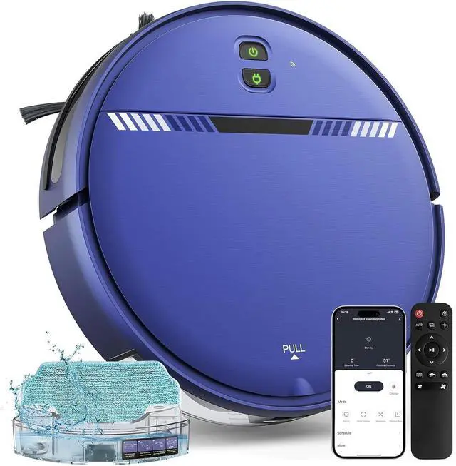 Robot Vacuum and Mop Combo, Robotic Vacuum Cleaner 2 in 1 with WiFi/App/Voice, Schedule, Water Tank and Dustbin, Self-Charging, Slim, Ideal for Hard Floor, Pet Hair, Carpet