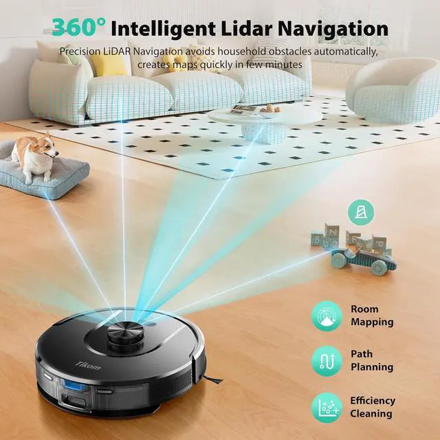 360° LiDAR Navigation & Smart Mapping: Equipped with advanced LiDAR technology, the robot vacuum and mop scans your home in 360° and creates maps. It intelligently avoids obstacles like walls, stairs, ensuring no missed spots or repeated passes. Multi-floor maps(5 Max) can also be saved for seamless cleaning