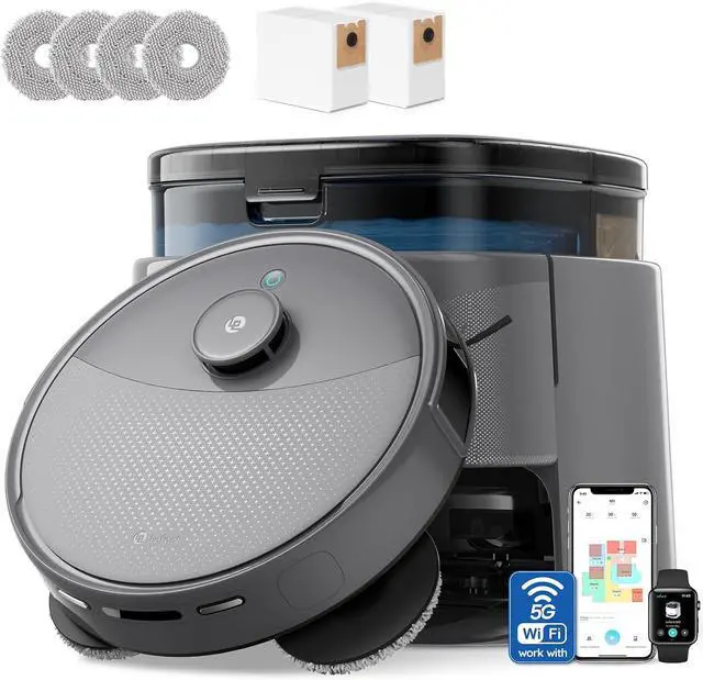 Support Dual-Band WiFi (2.4GHz/5GHz): Auto-switching ensures stable connectivity for uninterrupted cleaning. The 2.4GHz band provides whole-home coverage, while the 5GHz band enables high-speed control. No more dropouts! The system continuously monitors network conditions, optimizing performance in real-time to avoid interference and congestion