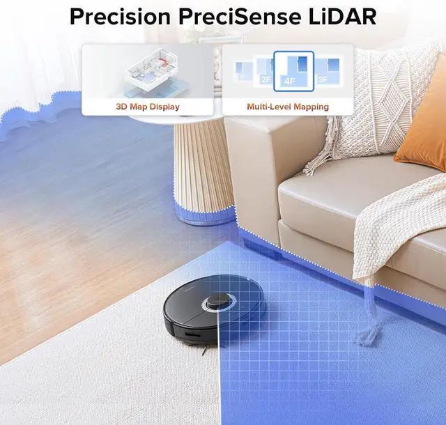 ReactiveTech Obstacle Avoidance: Powered by structured light, this advanced system effortlessly detects and navigates around obstacles, even in cluttered rooms with items scattered across the floor.