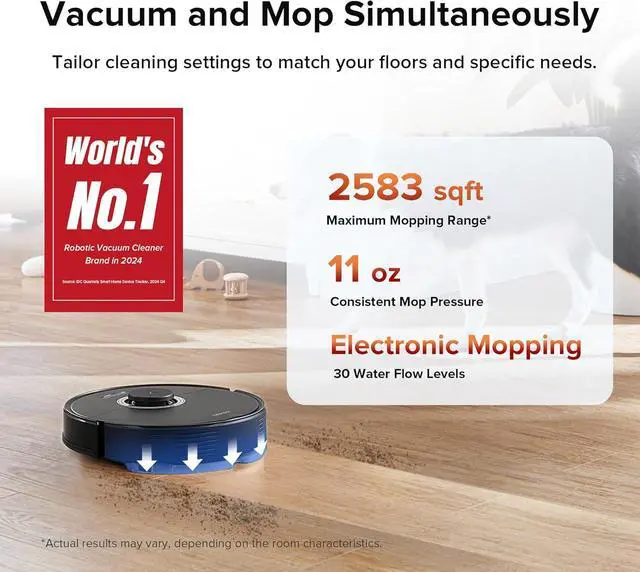Auto-Lifting Mopping System: Automatically lifts the mop when detecting carpets, so you can mop hard floors and vacuum rugs in a single clean without manual adjustments.
