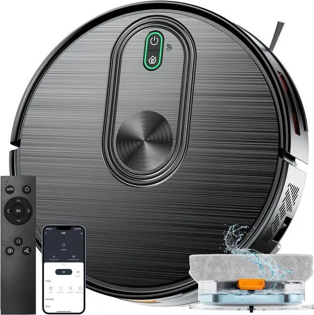 Robot Vacuum and Mop Combo, 2 in 1 Robotic Vacuums Cleaner with 6500Pa Max Suction, App/Wi-Fi/Voice, Robot Vacuum with Schedule, Self-Charging, Slim, for Pet Hair, Hard Floor, Carpet