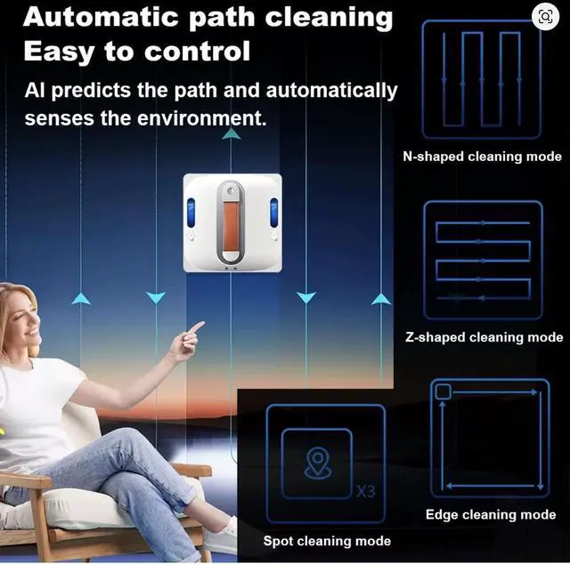 High-Power 7000 Pa Suction for Secure Vertical CleaningCleaning vertical glass requires strong stability.